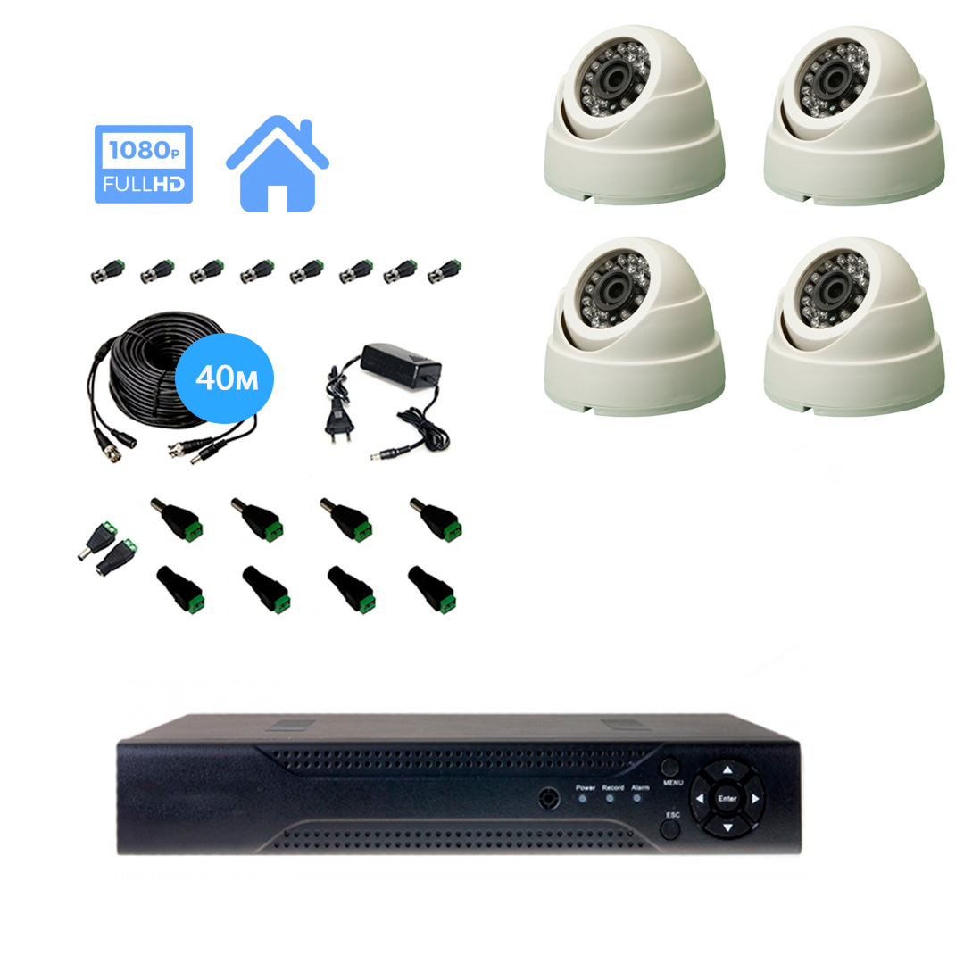 — Четыре купольные камеры, белого цвета, выполненные из пластика, режим работы от -10 до +50, объектив 3,6 мм, угол обзора 90 градусов, Матрица Smart Sens, разрешение 2.0 mpx (видно лица людей до 15 метров), ночная подсветка до 10 метров.
